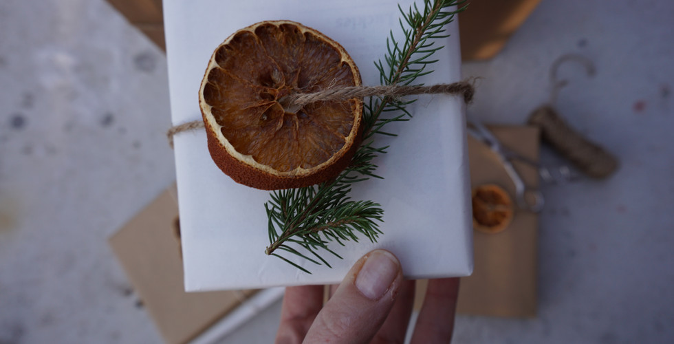 Since this weekend was Easter weekend, we thought of organising some kind of Easter brunch where we can exchange Christmas gifts (Eastmas?!). And, as the seasons passed since this article was planned to be posted (quite literally, an entire season later), I thought I would adapt it from orange garlands for Christmas decorating to seasonal giftwrapping.